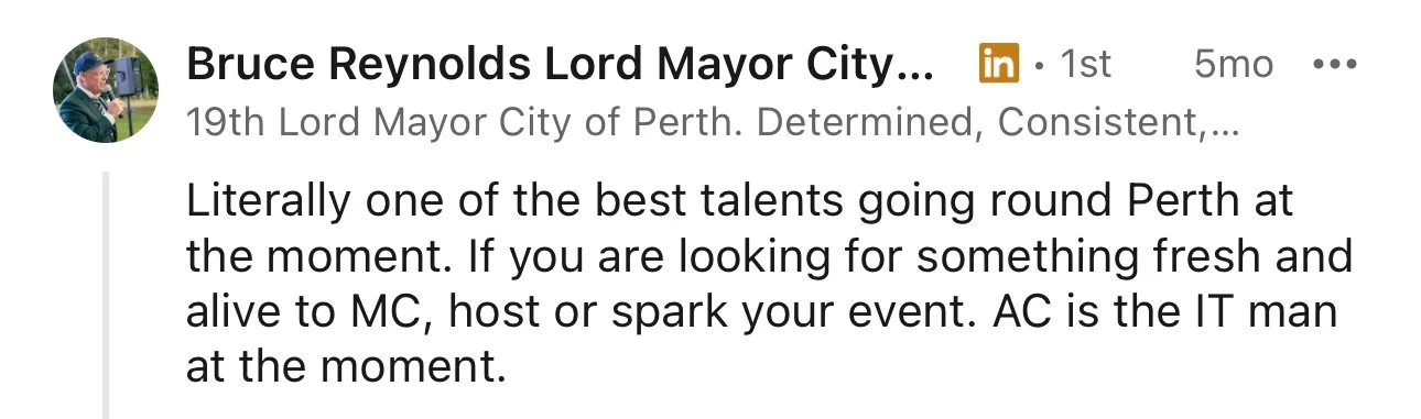 “Alexander is one of Perth’s finest MCs, his professionalism and versatility are truly unmatched”